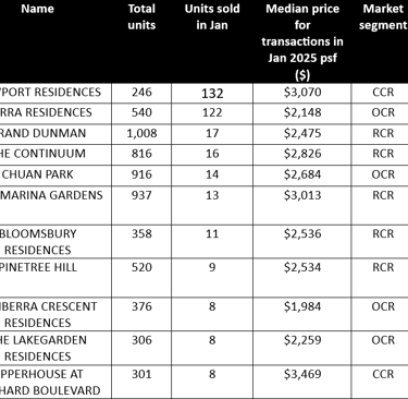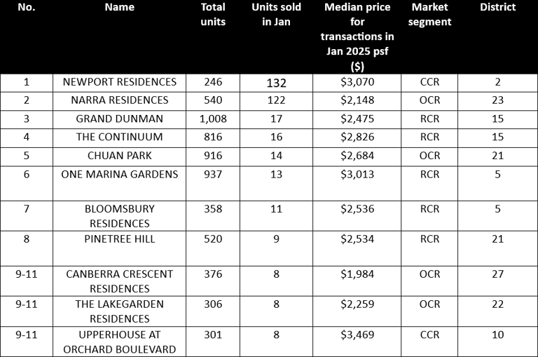 Table 2: Top-performing new non-landed projects (excluding ECs) in January